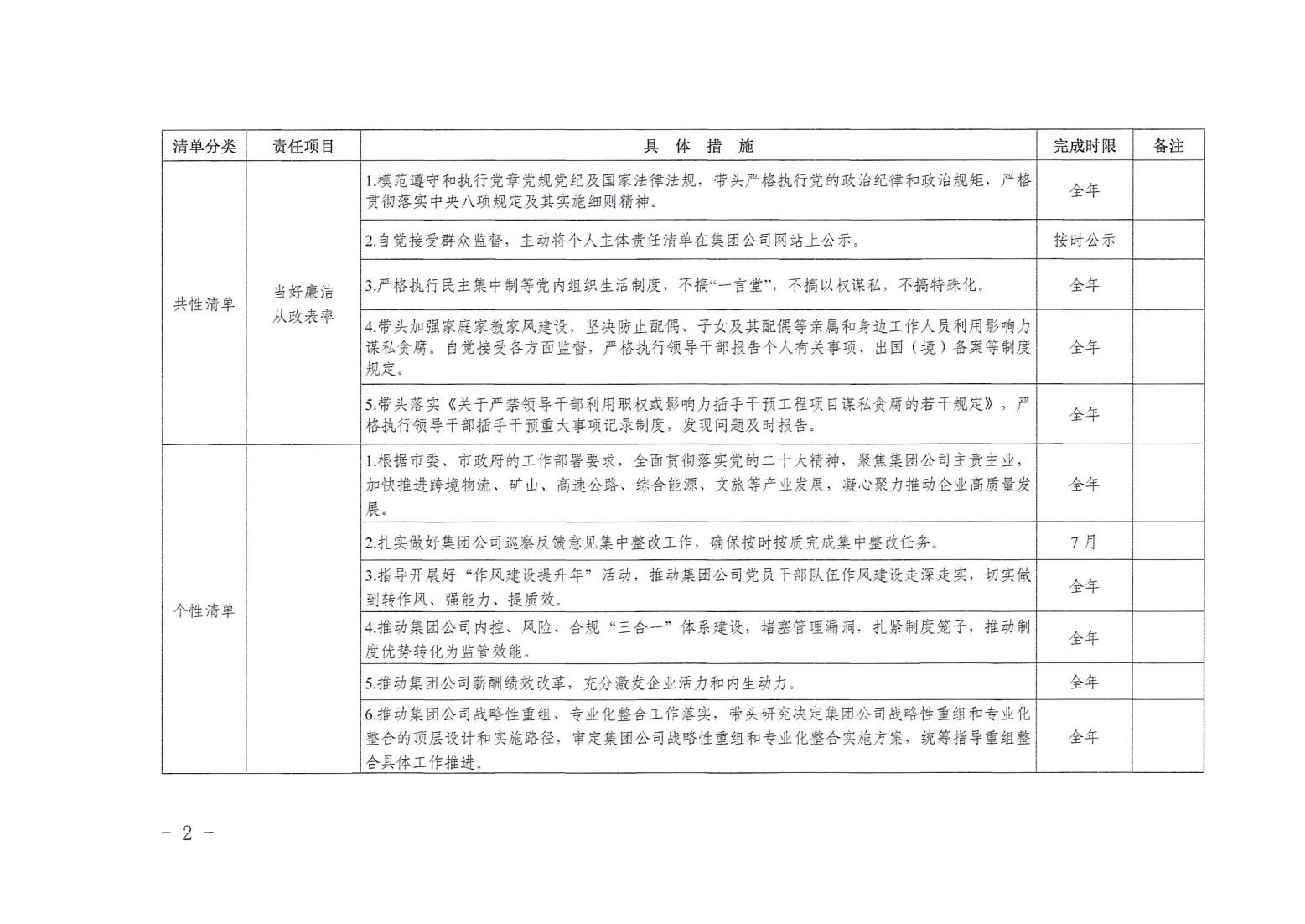 領(lǐng)導班子其他成員2024年度黨風廉政建設(shè)“一崗雙責”清單(一)