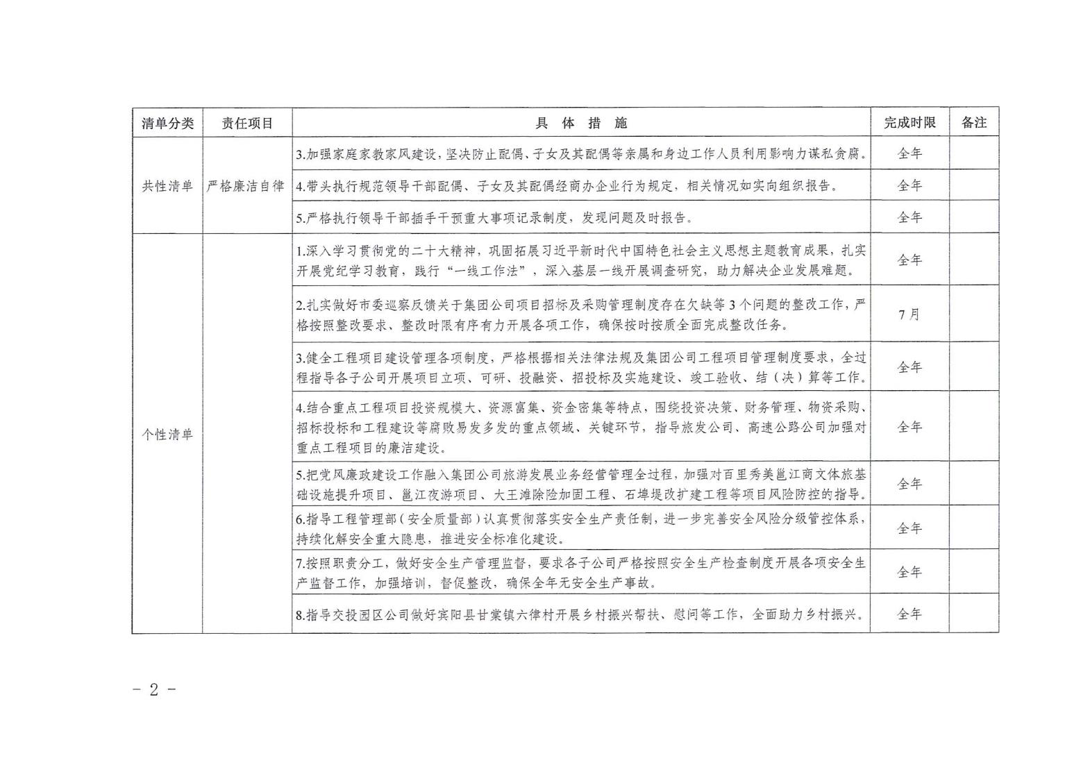 領(lǐng)導(dǎo)班子其他成員2024年度黨風(fēng)廉政建設(shè)“一崗雙責(zé)”清單(二)