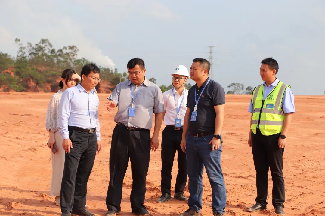 為進(jìn)一步推進(jìn)項(xiàng)目建設(shè),解決存在的問(wèn)題,5月12日下午,集團(tuán)公司黨委書記、董事長(zhǎng)、總經(jīng)理?xiàng)顫i帶領(lǐng)交投園區(qū)公司黨支部書記、董事長(zhǎng)陳海華,投資發(fā)展部、項(xiàng)目部及項(xiàng)目參建單位的有關(guān)人員到項(xiàng)目現(xiàn)場(chǎng)檢查指導(dǎo)工作。