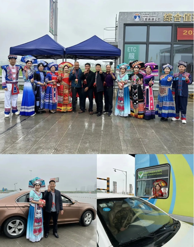 在六賓高速賓陽南收費(fèi)站,六賓高速公司的志愿者們身穿民族特色服裝,化身高速公路上的“阿哥”“阿妹”,在提供出行服務(wù)的同時(shí),為過往司乘人員送上了滿滿的祝福以及具有民族特色的繡球、香囊,形成收費(fèi)站上一道靚麗的風(fēng)景線。