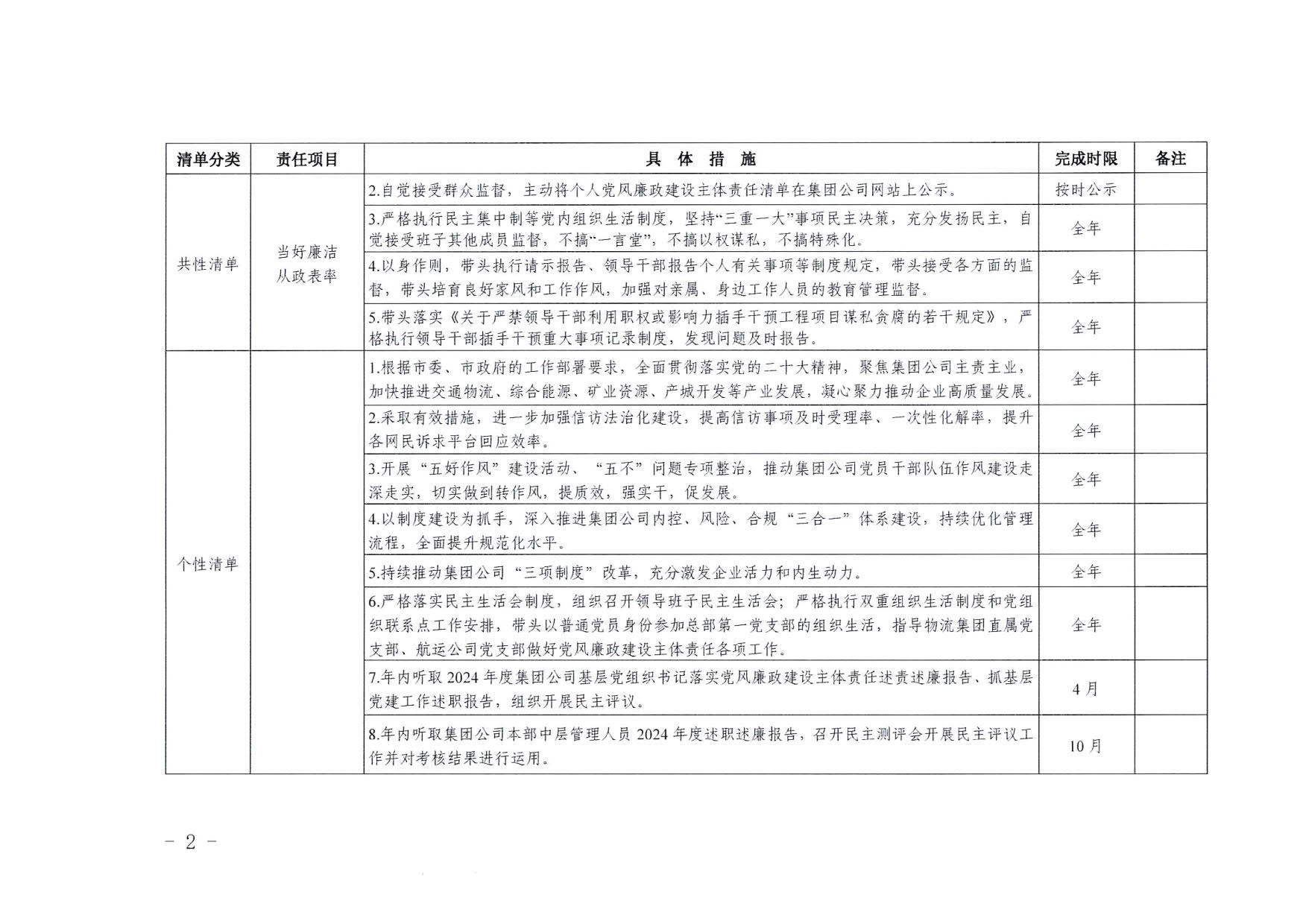 南寧交投集團領導班子其他成員2025年度黨風廉政建設“一崗雙責”清單(一)